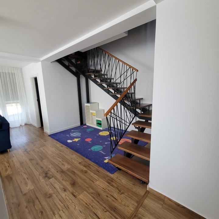 Oferim spre închiriere o casă modernă, cu o suprafață de 240 mp utili, complet mobilată și utilată, situată în complexul rezidențial North Point Residence, un cartier liniștit, cu acces securizat, loc de joacă pentru copii și administrator/handyman disponibil permanent.