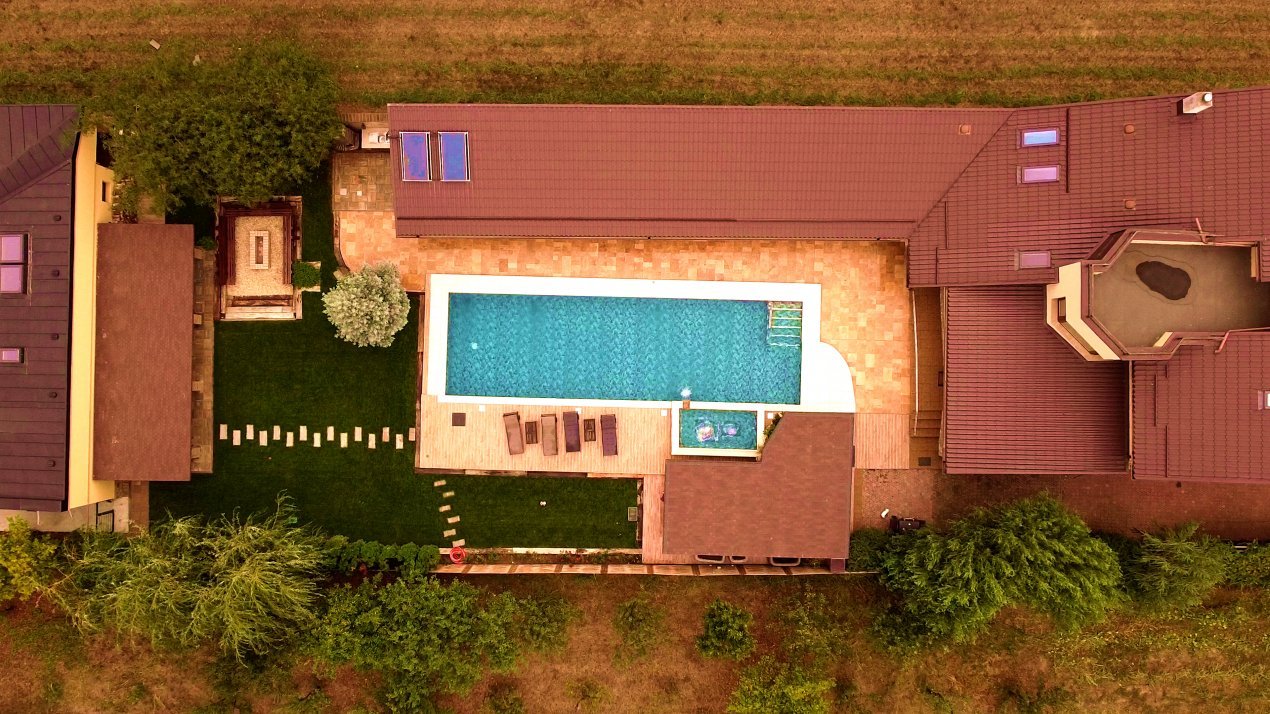 🏊 - Piscină impresionantă (85 mp) și jacuzzi (10 mp) – construită în 2023, cu filtrare automată, hidroliză și iluminat LED subacvatic