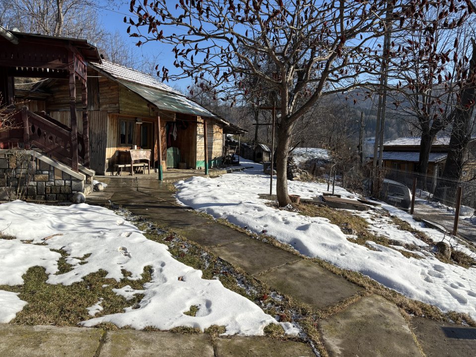 Cadrul natural din jur este deosebit, zona oferă liniște și intimitate, iar elementele de piatră combinate cu lemn dau farmec casei și o integrează foarte frumos în peisaj.