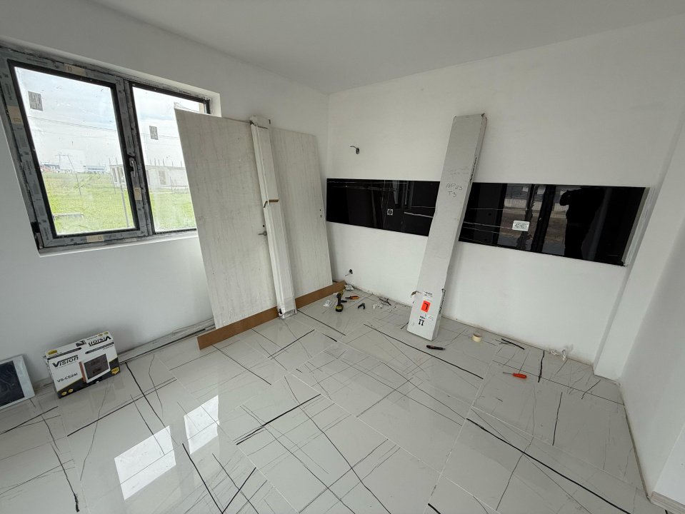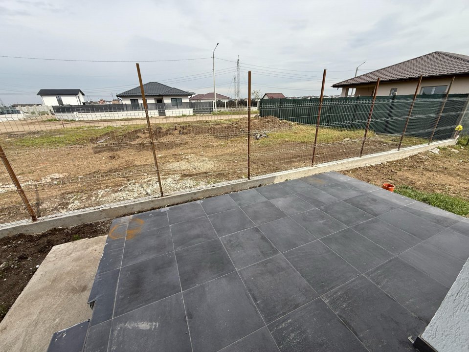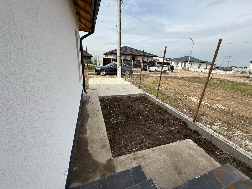 Va propunem spre vanzare vila individuala in suprafata construita de 92,7mp pe terenuri cu suprafate de 340-360mp, suprafata utila de 73mp la care se adauga terase de aproape 12mp. Casa se vinde la gata, direct de la dezvoltator, are compartimentare decomandata, 2 bai, 2 dormitoare, un living si o bucatarie ce se poate inchide. Curtea libera este de aproximativ 250mp. Incalzirea se face pe baza de centrala termica pe curent si incalzire in pardoseala, ceea ce face ca aceasta casa sa aiba consumuri foarte eficiente de energie. Se poate aplica imediat pentru panouri fotovoltaice.