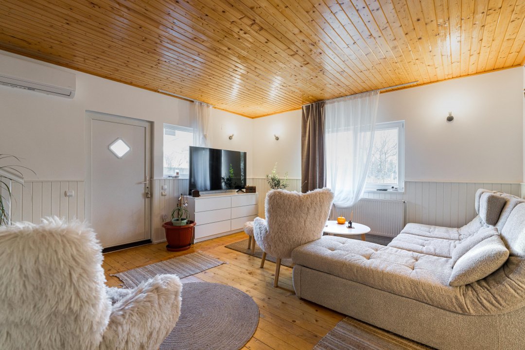Se vinde mobilată complet, doar televizoarele, fotoliile și frigiderul vor pleca de acolo.