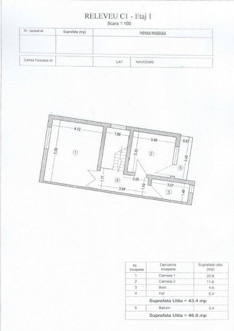 Agenția Experți Imobiliari vă oferă în exclusivitate spre vânzare o casă P+1 în zona Năvodari – Peninsula, amplasată într-o zonă liniștită și accesibilă. Imobilul este construit pe două niveluri și beneficiază de o compartimentare practică, la parter fiind amenajată o cameră, bucătăria și un grup sanitar, cu o suprafață utilă de 45,80 mp, iar la etaj se află două camere, o baie, totalizând 43,40 mp, completate de un balcon de 3,40 mp.