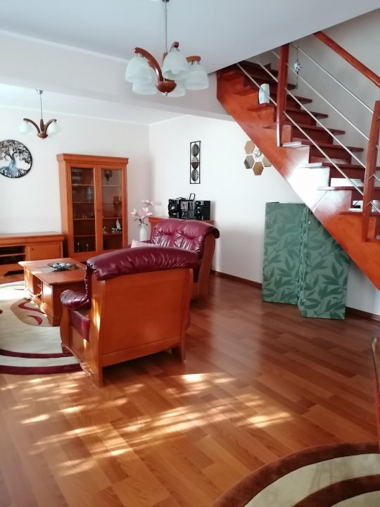 - Parter: hol intrare și living generos de aproximativ 60 mp, cu zonă de relaxare și dining