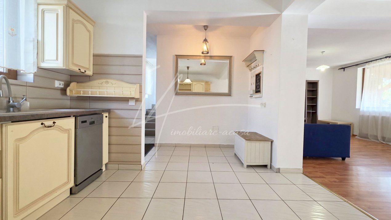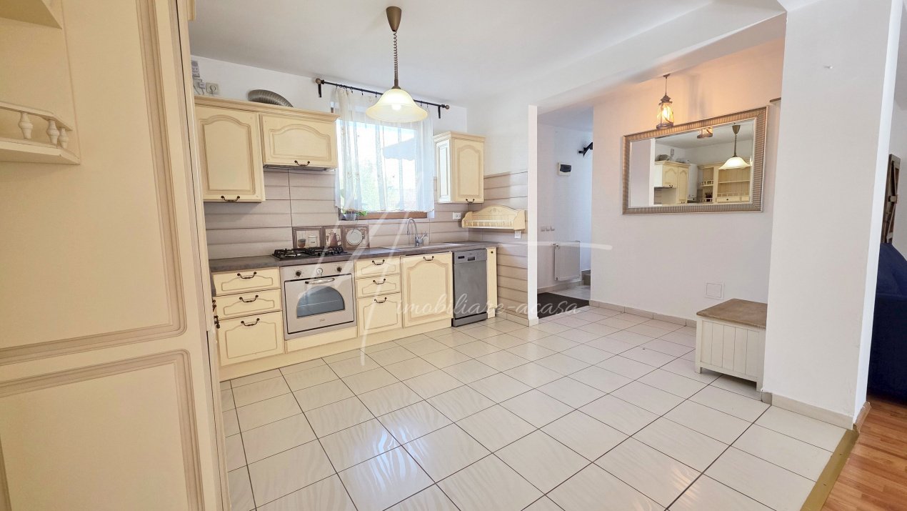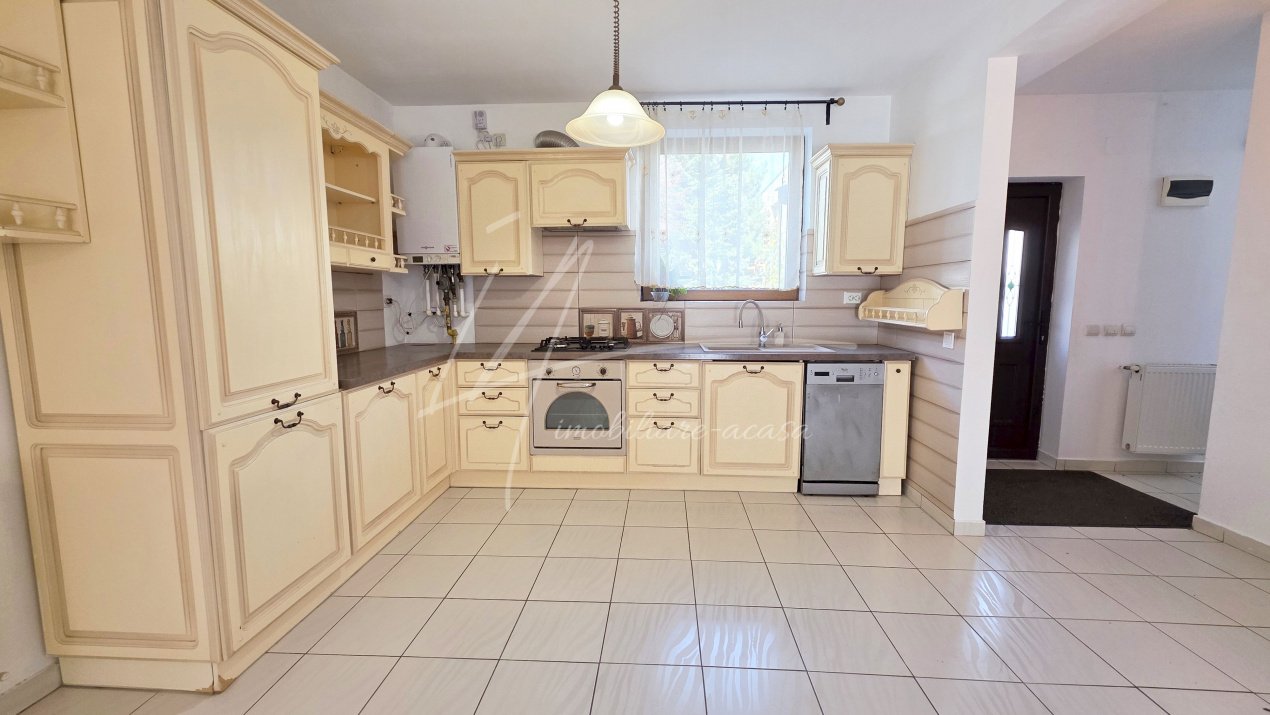 Altfel, casa, pe cat de generoasa si confortabila, este pe atat de intima, atat cat isi doreste orice familie doritoare de liniste si confort sporit. Caci, in completarea livingului imens cu bucatarie deschisa si echipata complet, a dinning-ului si grupului sanitar de la parter, se regasesc la etaj trei dormitoare individuale si o baie, toate in aceeasi nota reconfortanta.