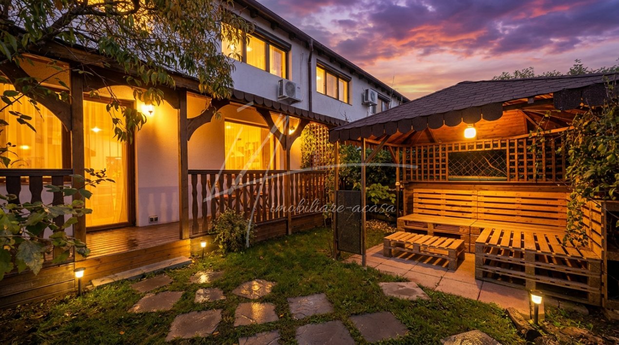 In plus, curtea este o adevarata oaza de relaxare, atat prin existenta terasei acoperite cu acces in si din living si a foisorului. Si totul se completeaza cu atmosfera tihnita a cartierului locuit de oameni de calitate. Totul la doar 30 de minute de Piata Unirii.