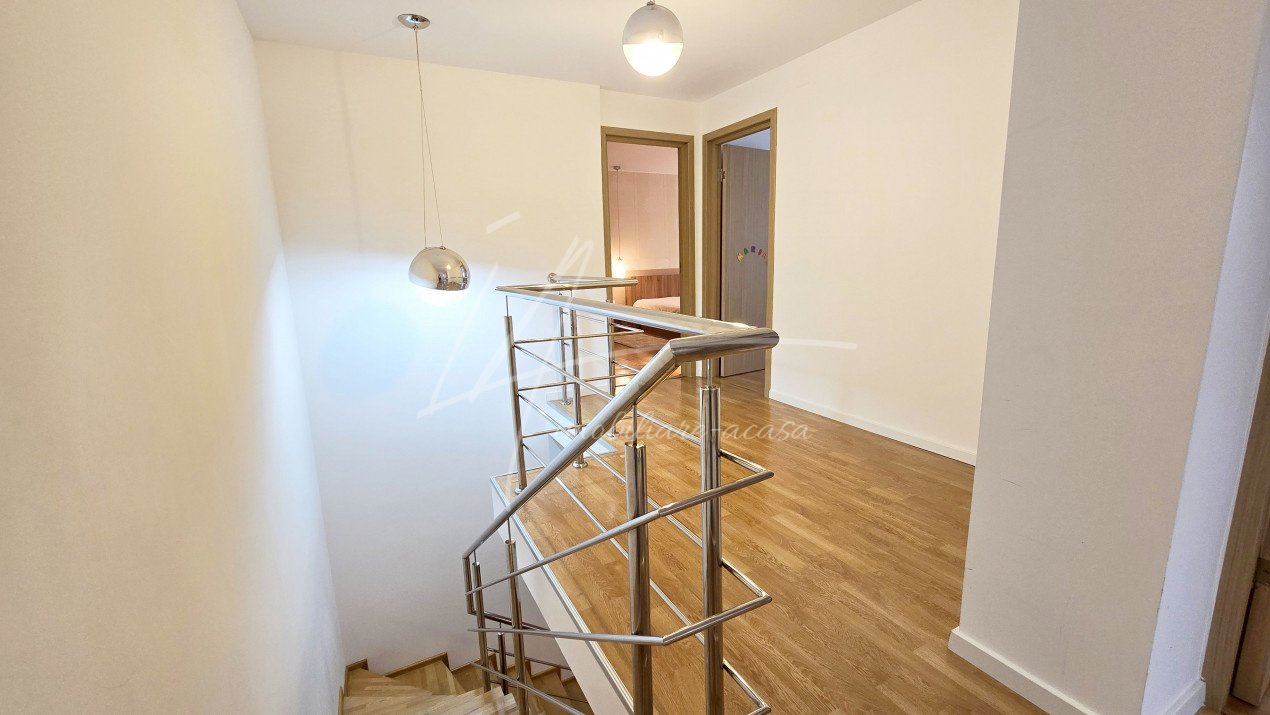 Altfel, casa, pe cat de generoasa si confortabila, este pe atat de intima, atat cat isi doreste orice familie doritoare de liniste si confort sporit. Caci, in completarea livingului imens cu bucatarie deschisa si echipata complet, a dinning-ului si grupului sanitar de la parter, se regasesc la etaj doua dormitoare individuale, o baie si un dormitor matrimonial cu baie proprie, toate in aceeasi nota reconfortanta.