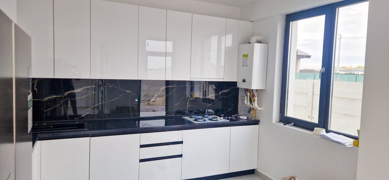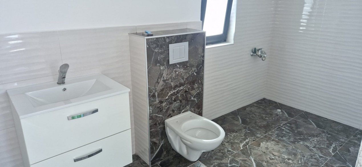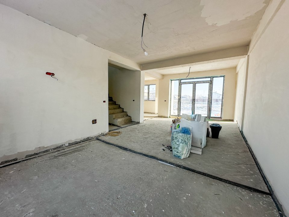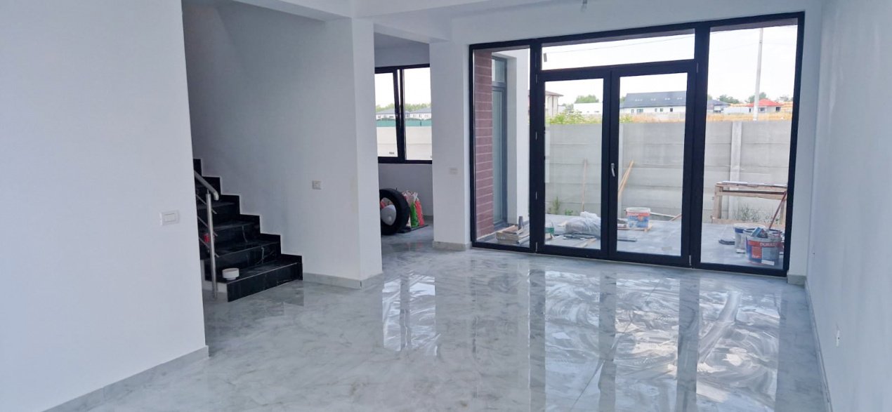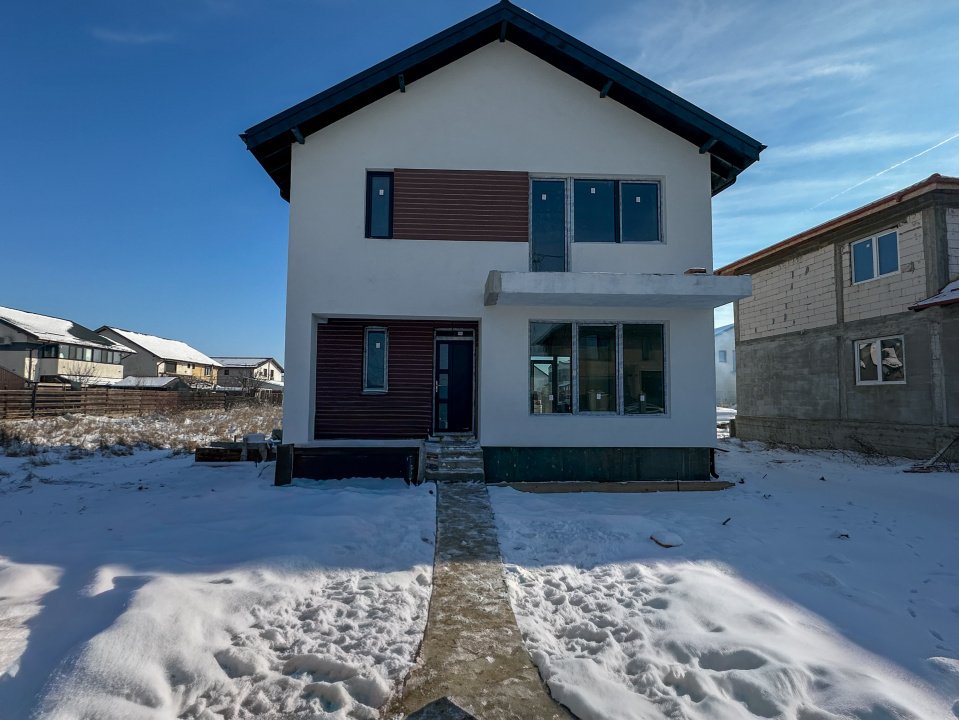 Casa nu este finalizata, este in curs de finalizare. Pozele cu finisajele sunt cu titlu informativ de la o casa aproximativ identica in ceea ce priveste suprafata si compartimentarea.