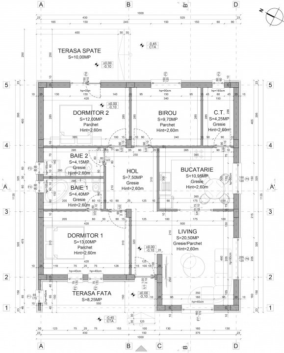 Compartimentare: living, bucatarie închisă, 2 dormitoare, 1 birou (ce poate fi al 3-lea dormitor), 2 bai, hol