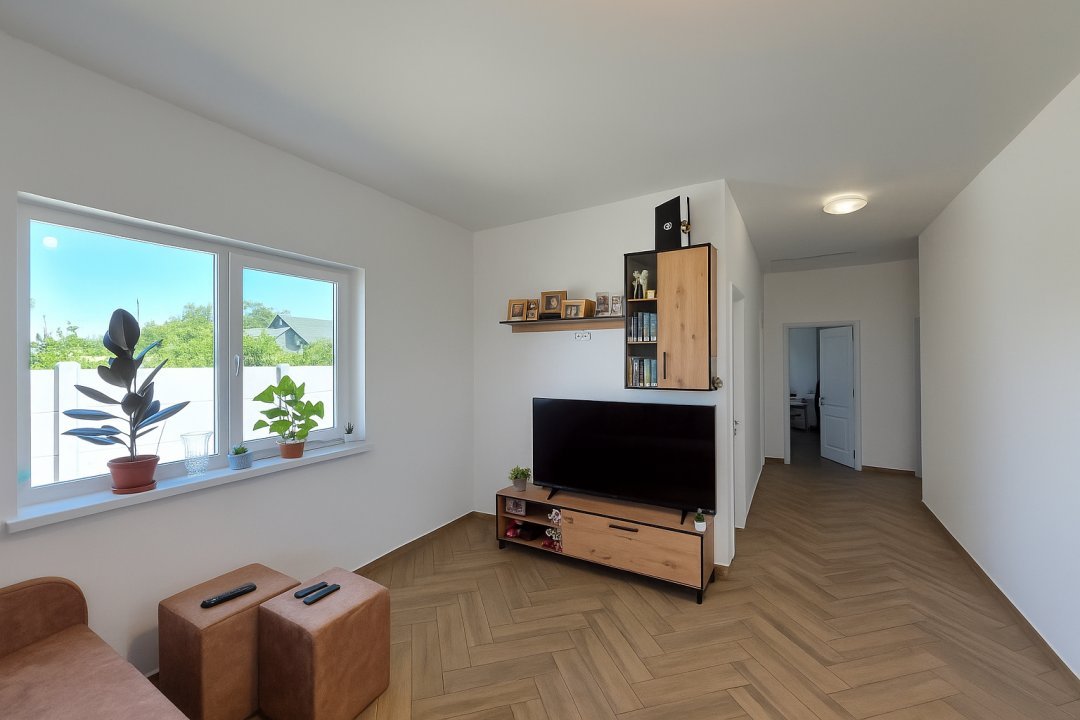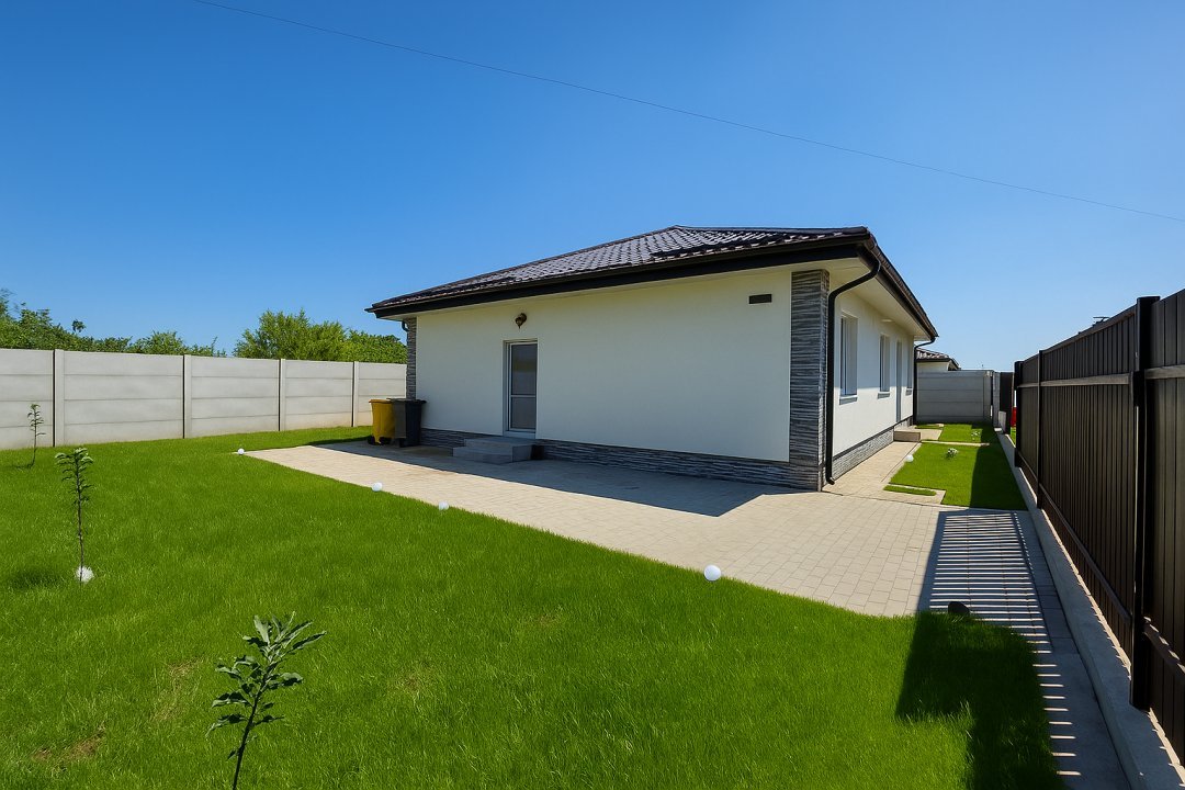 Vă oferim spre vânzare o vilă modernă, situată într-o zonă liniștită și accesibilă, perfectă pentru o familie. Imobilul este construit pe parter, având o suprafață utilă de 115 mp și un teren de aproximativ 400 mp. Vila beneficiază de facilități si finisaje de înalta calitate, inclusiv încălzire în pardoseală, centrală pe gaze, ce asigură un confort deosebit. De asemenea, este racordată la toate utilitățile și dispune de un pod izolat și placa de beton pe parter.