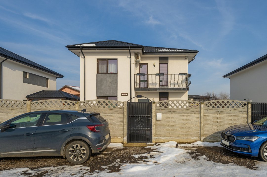 Casa face parte dintr-un proiect de 8 case individuale, finalizate in anii 2023-2024. Este construita pe un lot de teren in suprafata de 265 mp si este dispusa pe parter si etaj si beneficiaza si de un pod pentru depozitare. Casa are o suprafata totala de 129,5 mp, din care 114 mp sunt utili.
