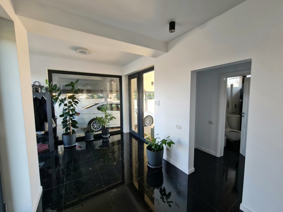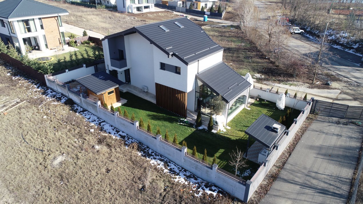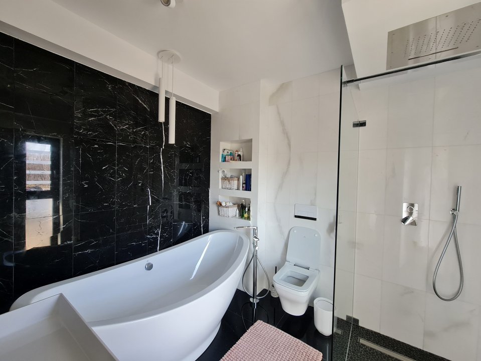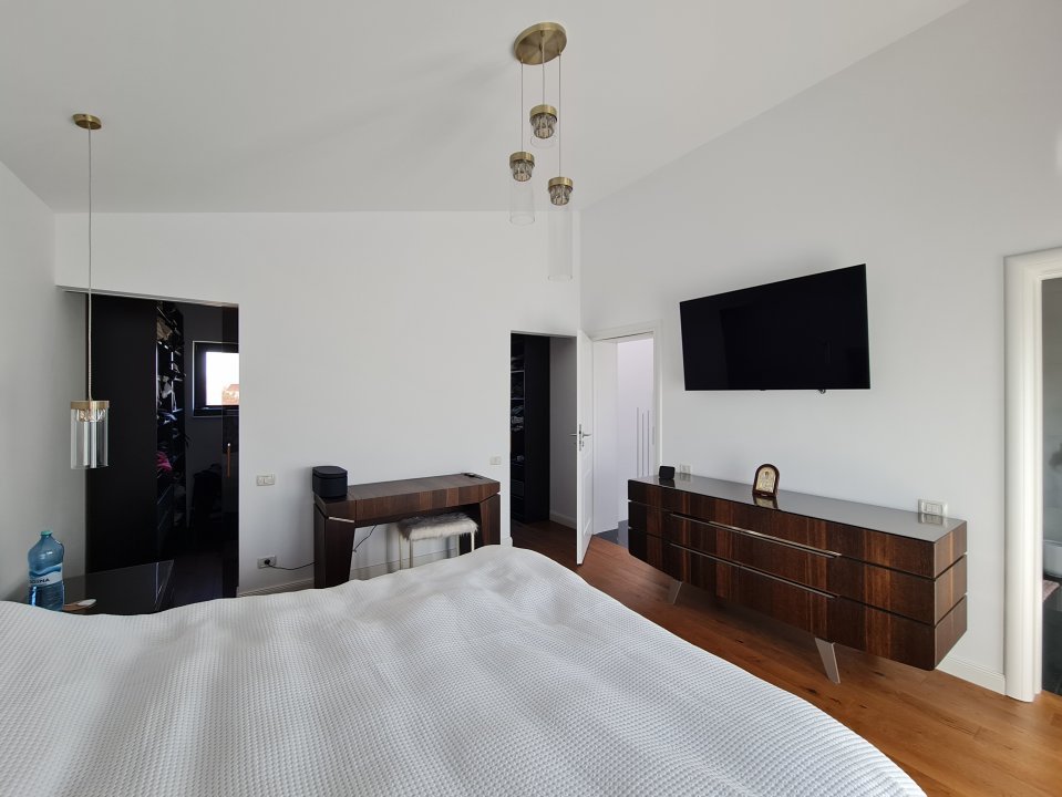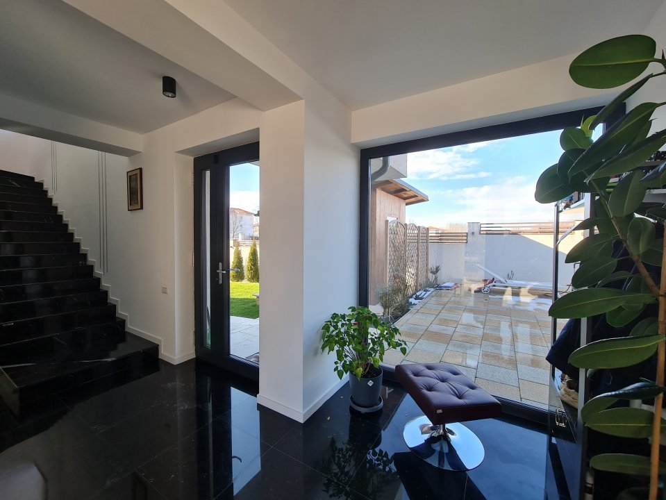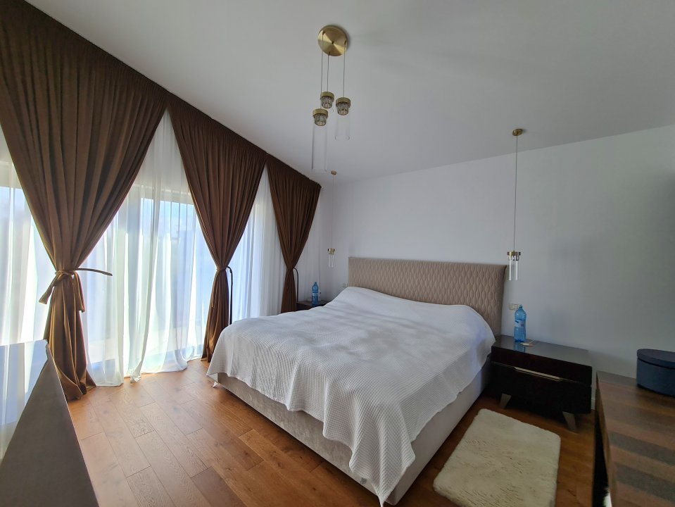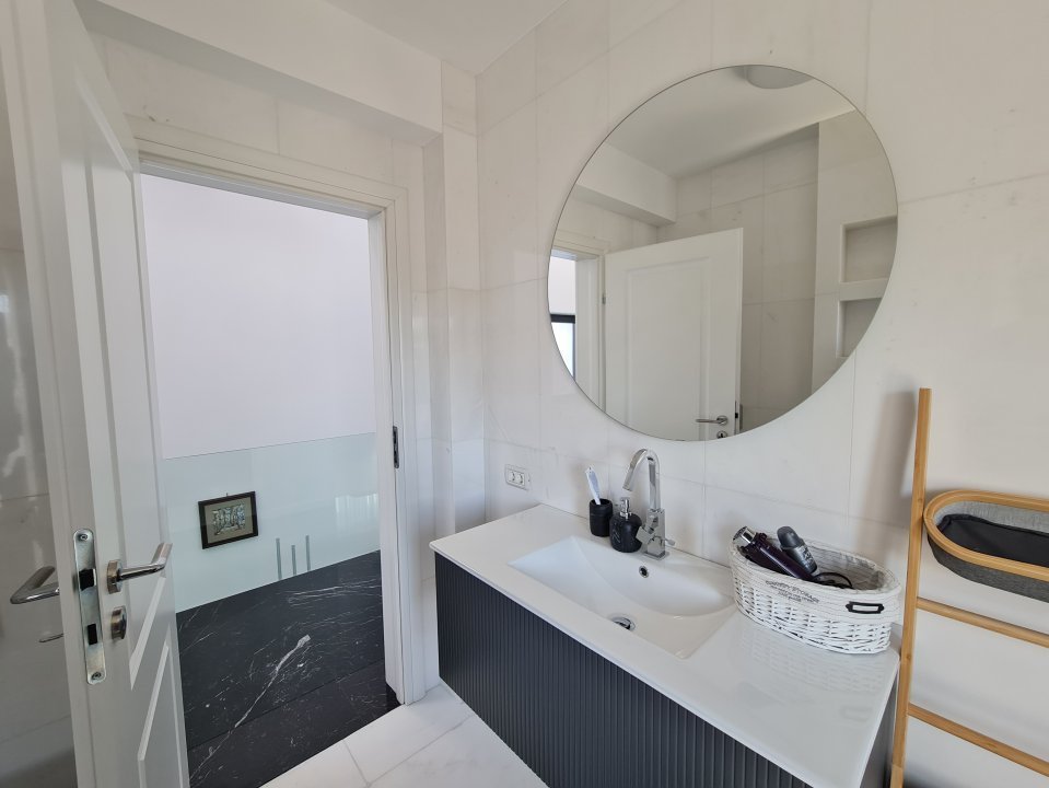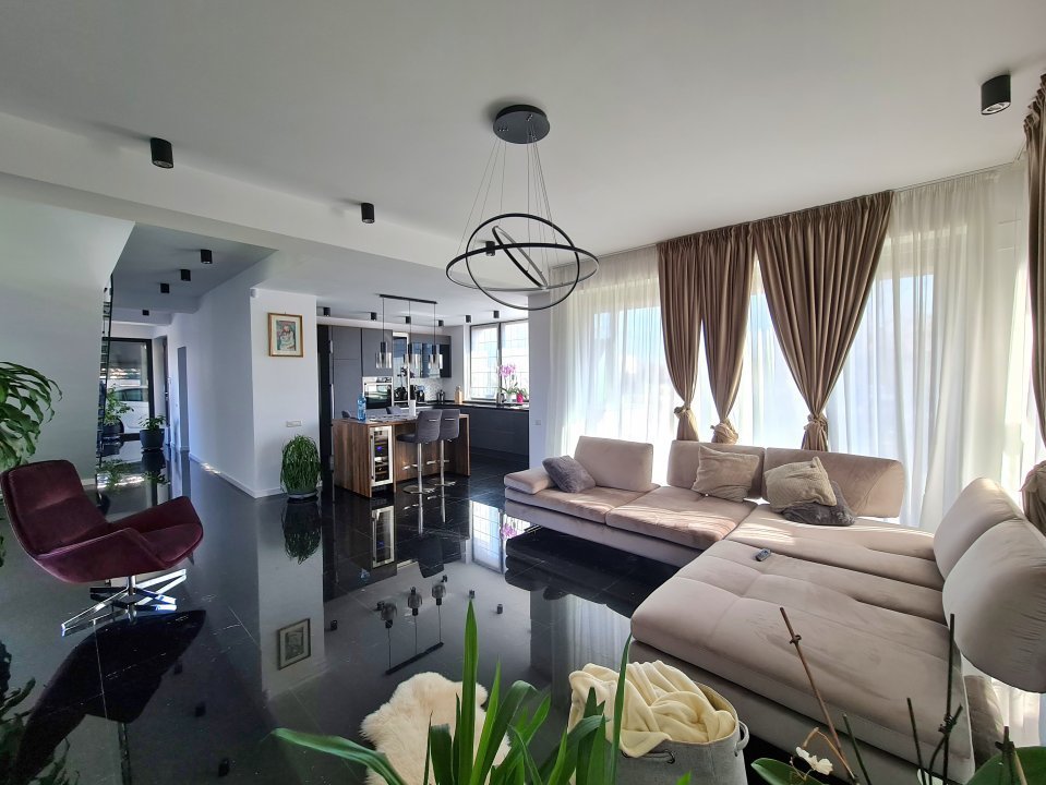 Mobilierul este comandat din Italia fiind in gama de lux, cele 3 tipuri de Marmura folosite in exterior, interior si baile utilate cu mobilier de la Freestanding, plus lemnul masiv folosit in dormitoare aduc un rafinament in viata noului propritar. Celelalte benificii sunt : Incalzire in pardoseala pe zone, Supraveghere video, Sistem de alarma, Statii filtrare apa, Curent trifazic, Irigatii pomi si gazon, Robot special pentru tunsul gazonului, etc.