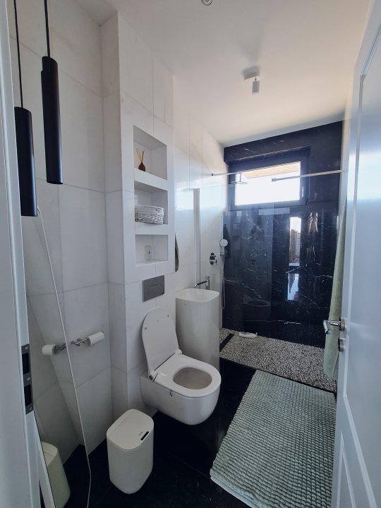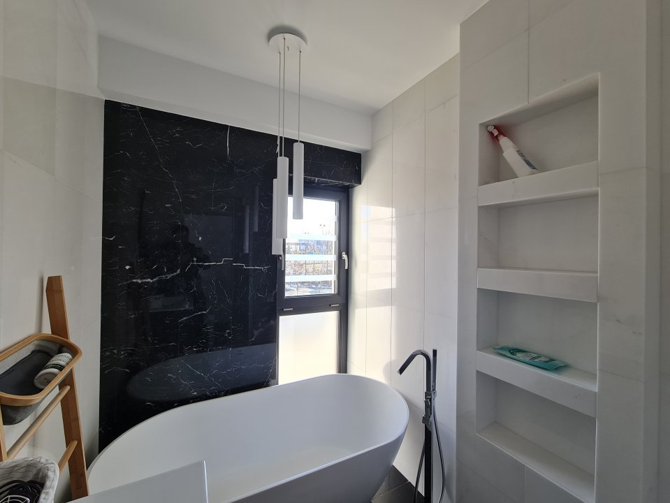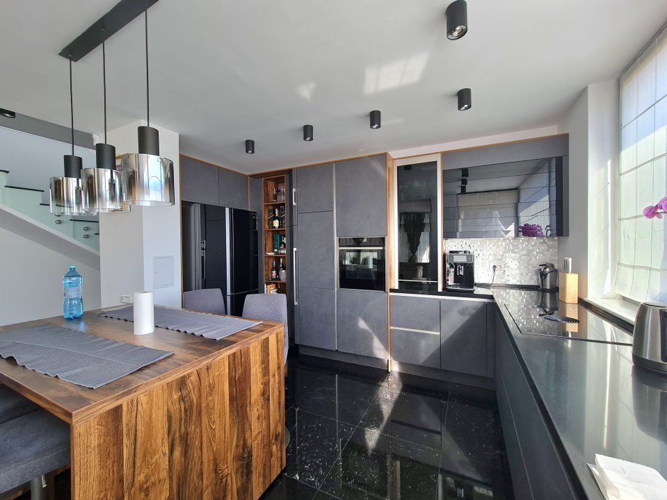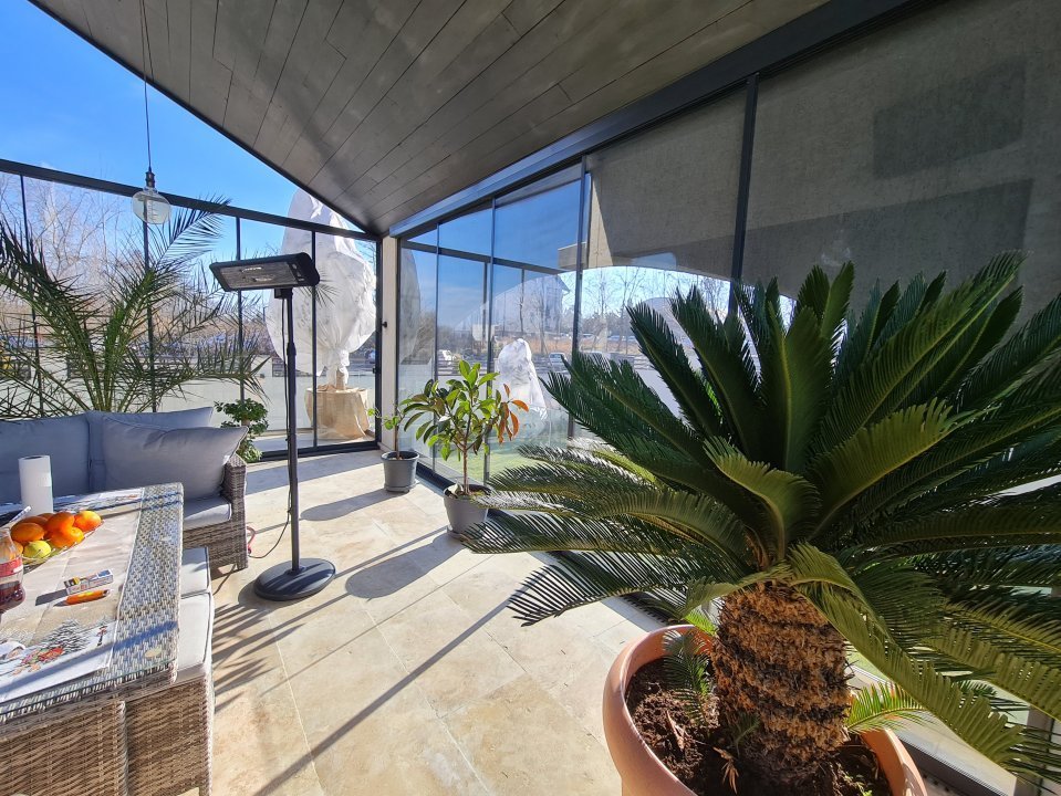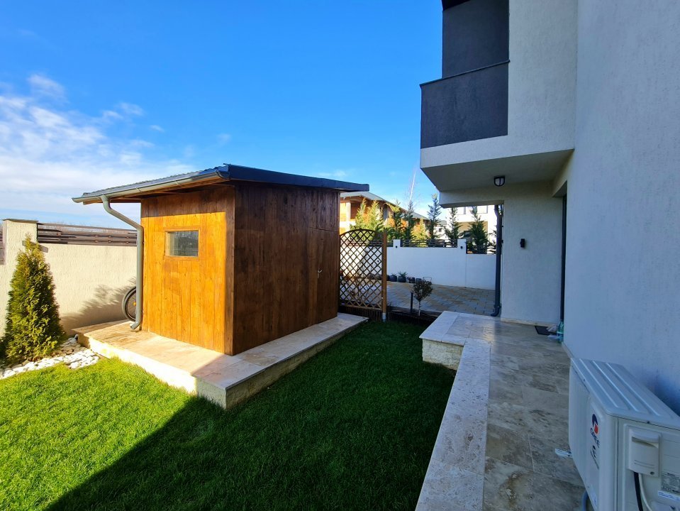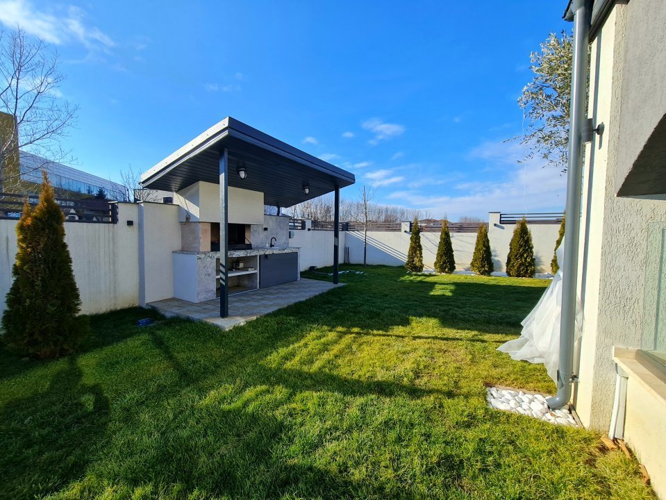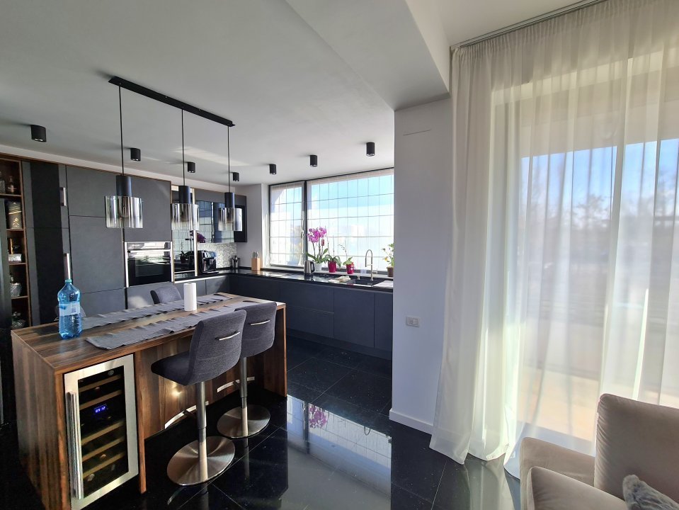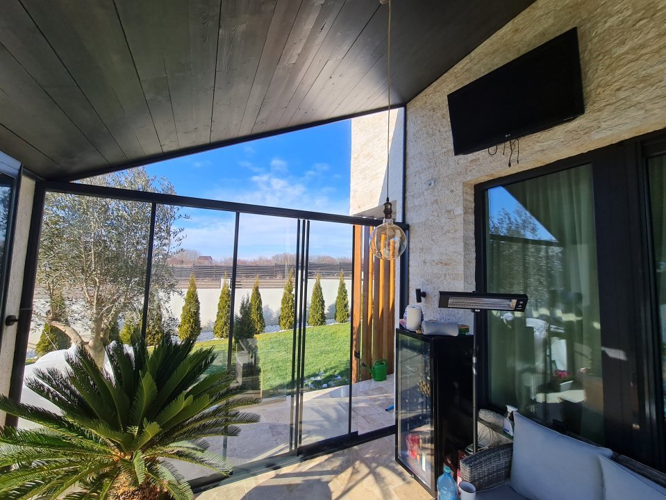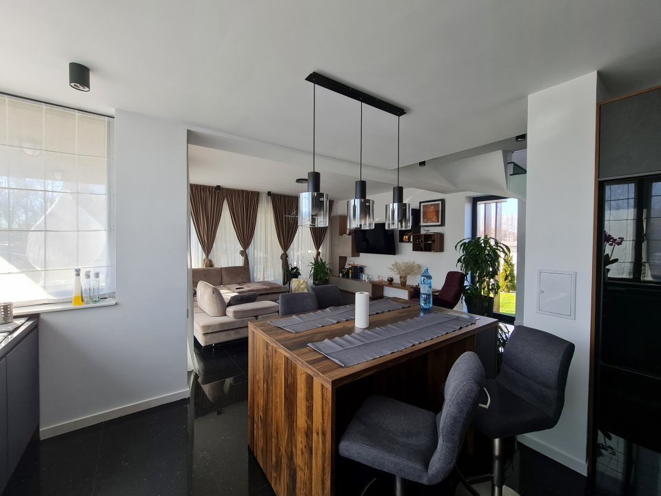 Mobilierul este comandat din Italia fiind in gama de lux, cele 3 tipuri de Marmura folosite in exterior, interior si baile utilate cu mobilier de la Freestanding, plus lemnul masiv folosit in dormitoare aduc un rafinament in viata noului propritar. Celelalte benificii sunt : Incalzire in pardoseala pe zone, Supraveghere video, Sistem de alarma, Statii filtrare apa, Curent trifazic, Irigatii pomi si gazon, Robot special pentru tunsul gazonului, etc.