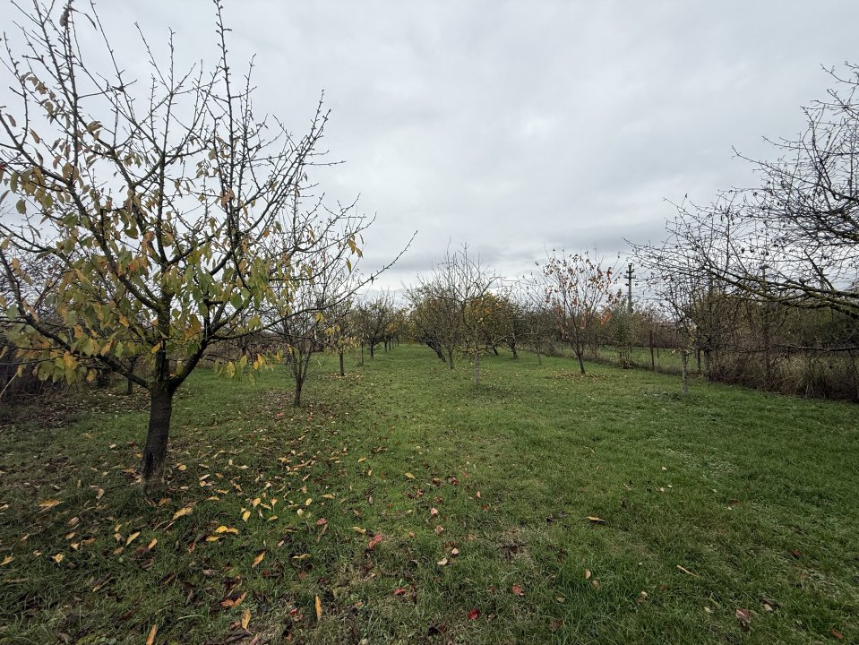 Proprietatea, de vanzare, este compusa dintr-un teren total de 1870mp: livada de 1500mp si curte amenajata cu gradina, foisor, gratar, balansoar si alte dependinte. Livada este formata din pomi fructiferi maturi, pe rod.
