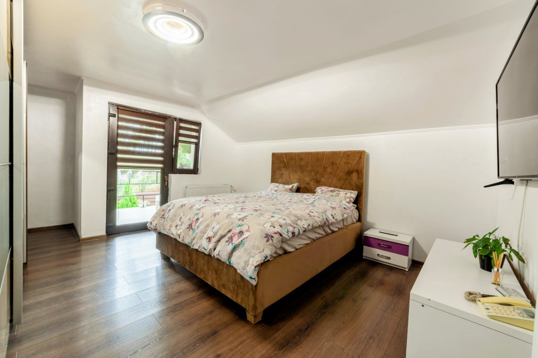 Casa are parter și mansardă, cu o suprafață construită de 160 mp (utilă aprox. 140 mp).