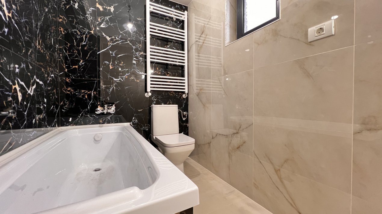 Constructia este realizata pe cadre din beton si caramida, cu tamplarie Salamander bluEvolution de 82 mm, geam tripan de 44 mm, 4 anotimpuri, si feronerie germana Roto – detalii care contribuie la confort si eficienta energetica.