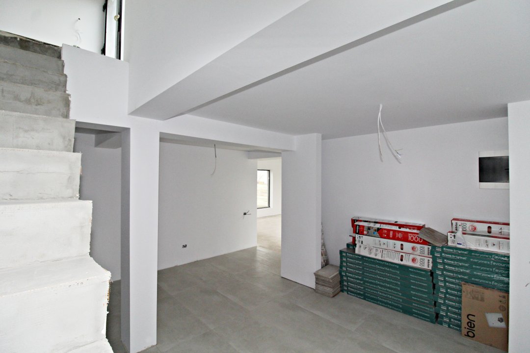 Vila moderna in zona Conacului, aflata pe o strada linistita si inchisa. Proprietatea este la stadiul de alb, construita in 2024 „ca la carte”, racordata la toate utilitatile si proiectata intr-un stil deosebit, cu linii moderne si spatii foarte bine gandite. Terenul are 390 mp cu deschidere de 18,98 ml, iar casa are 200 mp construiti desfasurati (108 mp utili la parter si 47,5 mp la etaj, plus o terasa superba de 32 mp). La parter regasim living cu bucatarie open space (cu posibilitatea de a fi separata), dressing la intrare, baie, doua dormitoare si camera tehnica pentru masina de spalat/depozitare. Etajul este dedicat zonei matrimoniale, cu dormitor, baie foarte mare, dressing si acces la terasa generoasa. Casa are incalzire in pardoseala, bai finisate cu gresie si faianta, gresie montata pe holuri si parchet cumparat (nemontat) pentru camere.