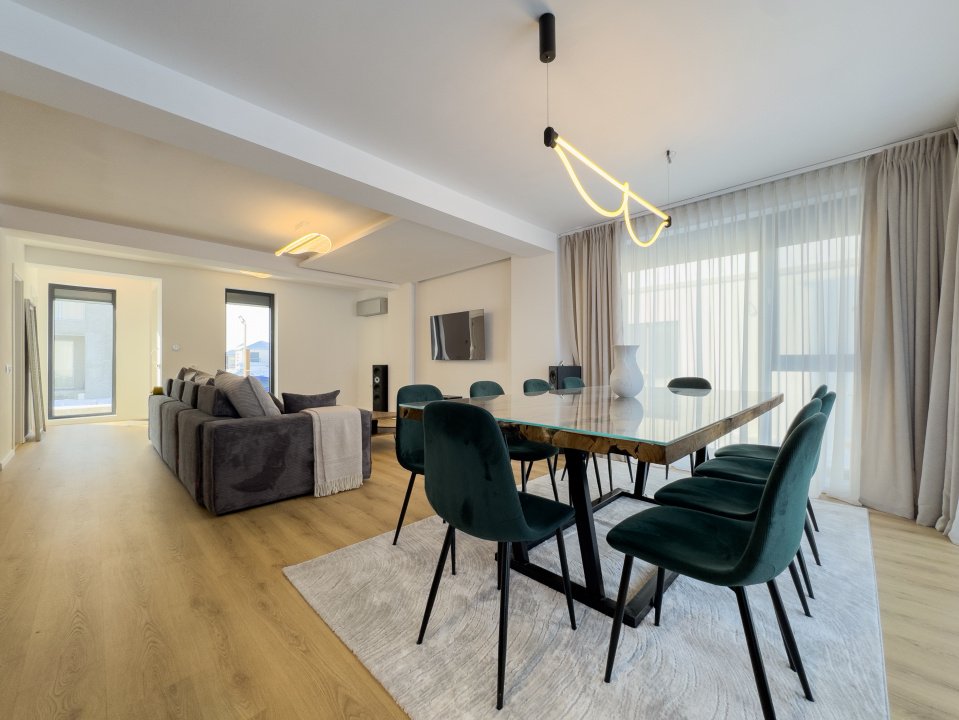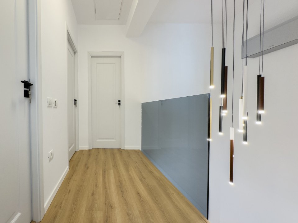 Proprietatea de vinde finisata complet si dispune de : gresie, faianta, parchet, tamplarie PVC Salamander, Usi interior, Obiecte sanitare, incalzire in pardoseala, izolatie exterioara cu polistiren de 10cm, tencuiala decorativa.