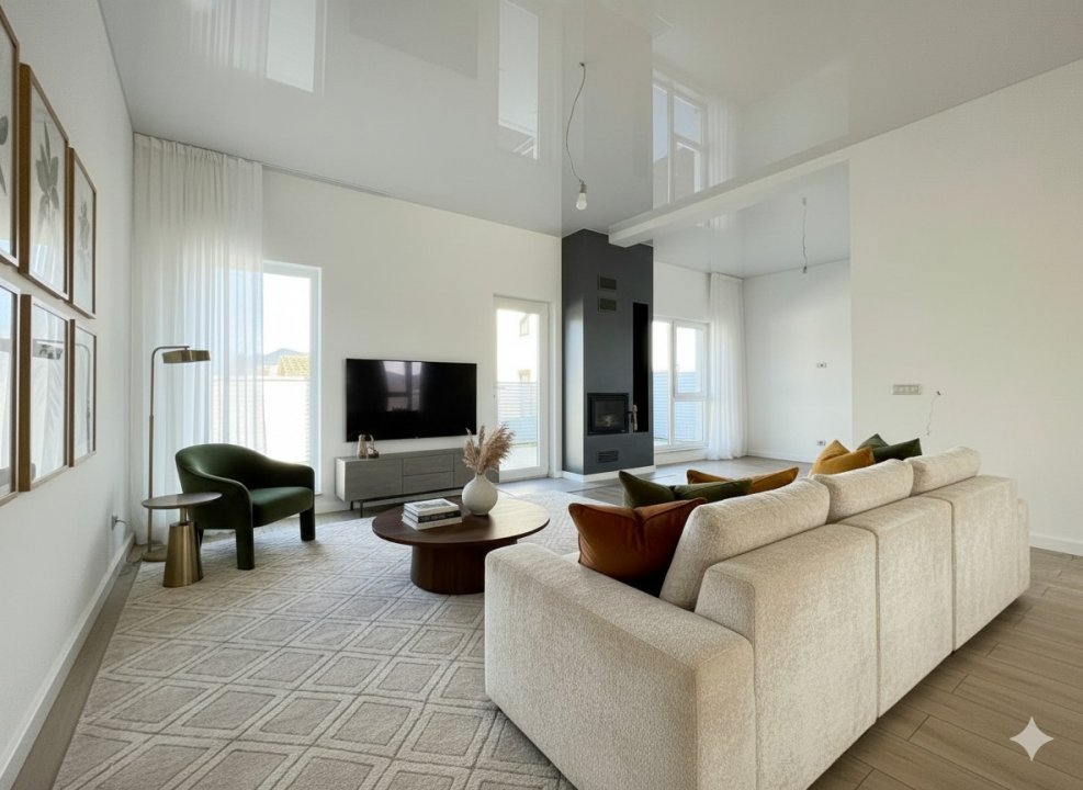 Parter: living generos + Bucătărie, baie, birou, spațiu tehnic și terasă