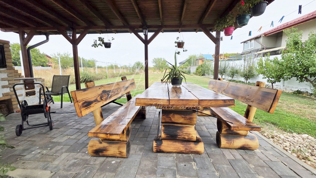 - terasa generoasa si foisor iluminat, prevazut cu gratar integral din samota, plita și afumatoare
