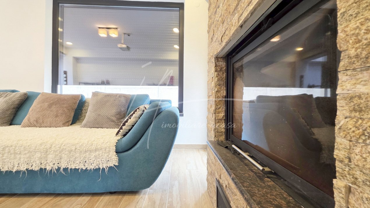 - living open-space cu semineu pe lemne si sistem de ventilatie pe doua niveluri