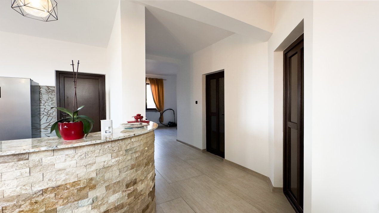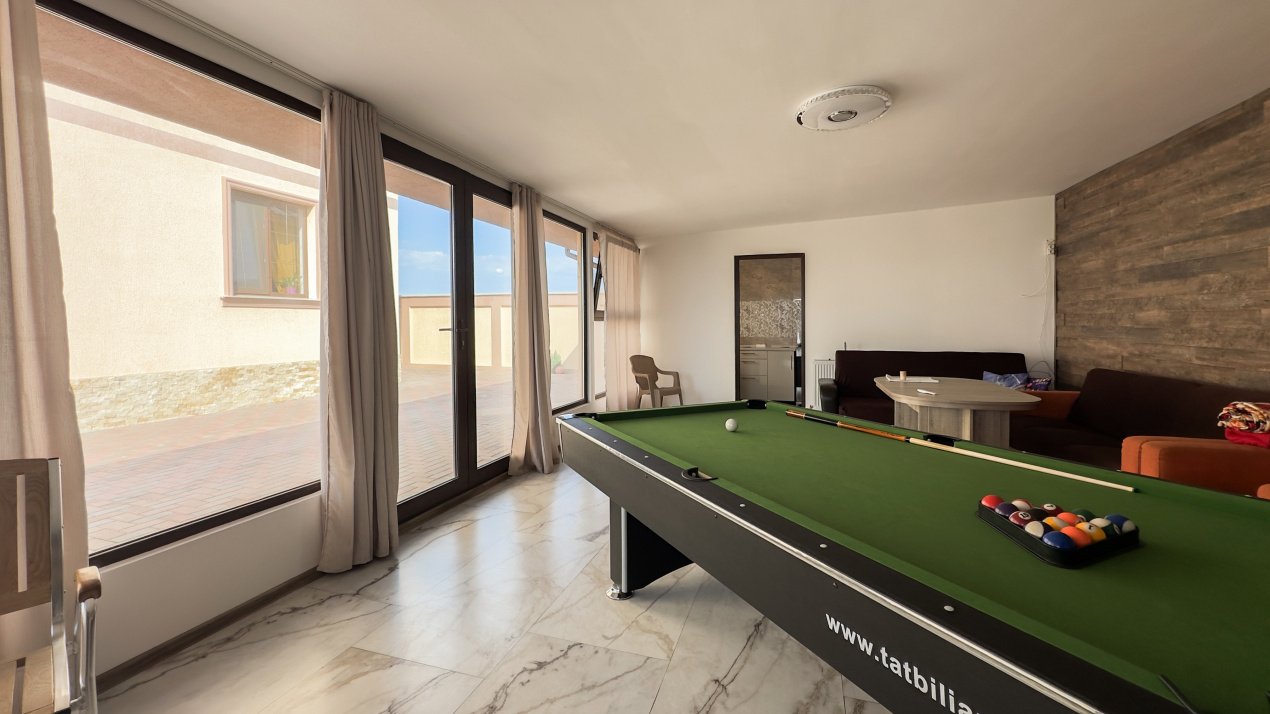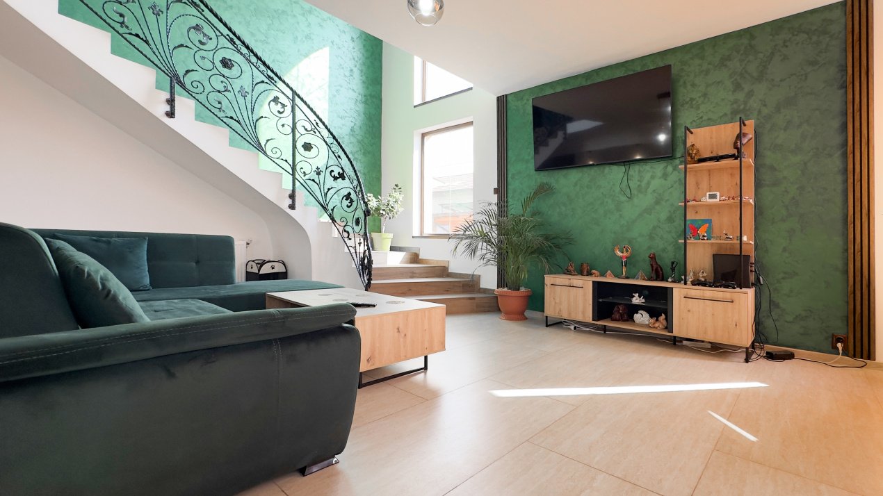 Un avantaj major îl reprezintă independența energetică, datorită sistemului de panouri fotovoltaice și centralei inteligente pe peleți, care asigură costuri reduse și eficiență maximă. Proprietatea include și un garaj cu acces direct în casă, precum și o terasă închisă de 90 mp, construită ca spațiu de relaxare și socializare, dotată cu toate utilitățile necesare pentru a fi folosită pe tot parcursul anului.
