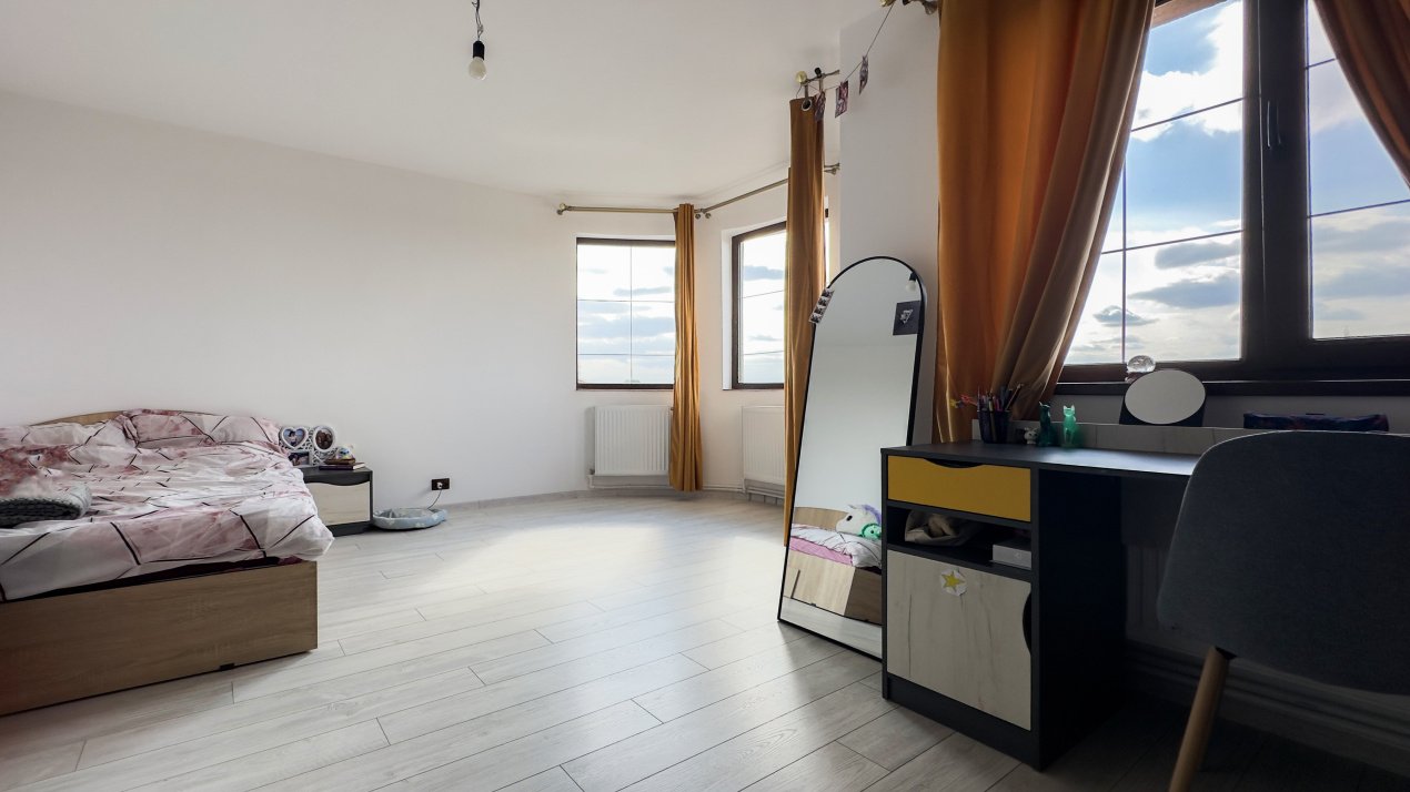 Vă prezentăm o proprietate rară pe piață: o vilă parter + etaj, elegantă și perfect funcțională, amplasată pe un teren de 500 mp, gândită pentru confort și viață modernă. Casa dispune de 5 camere, dintre care 4 dormitoare spațioase, un living generos, bucătărie separată și 3 băi, fiind complet mobilată și utilată la standarde moderne.