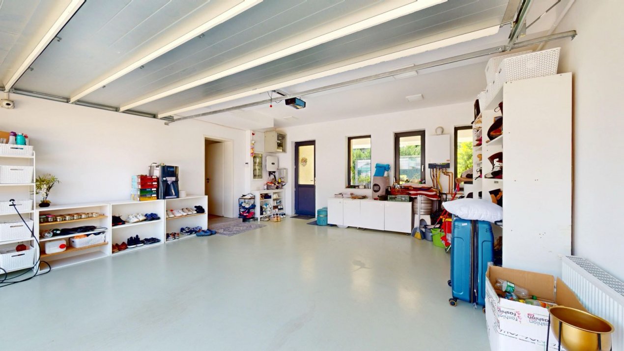 Garajul încălzit pentru două mașini, cu acces direct în casă, adaugă confort real — un detaliu apreciat cu adevărat în zonele rezidențiale exclusiviste.