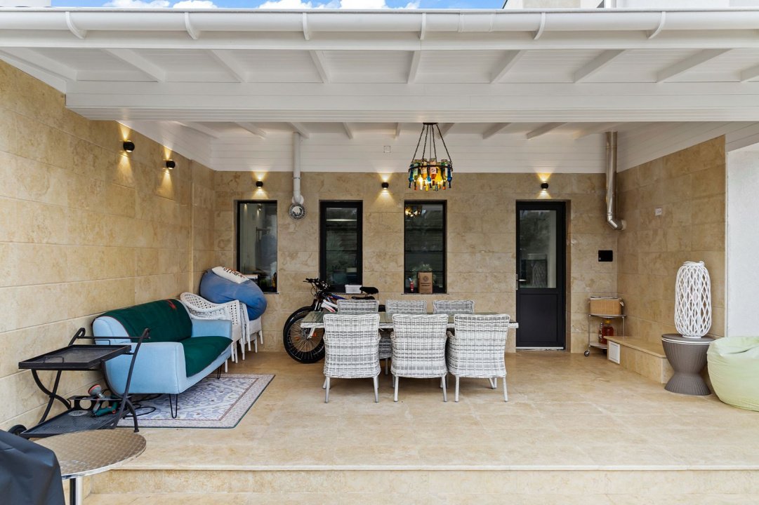 Terasa acoperită oferă un spațiu protejat, valoros, utilizabil în orice sezon.