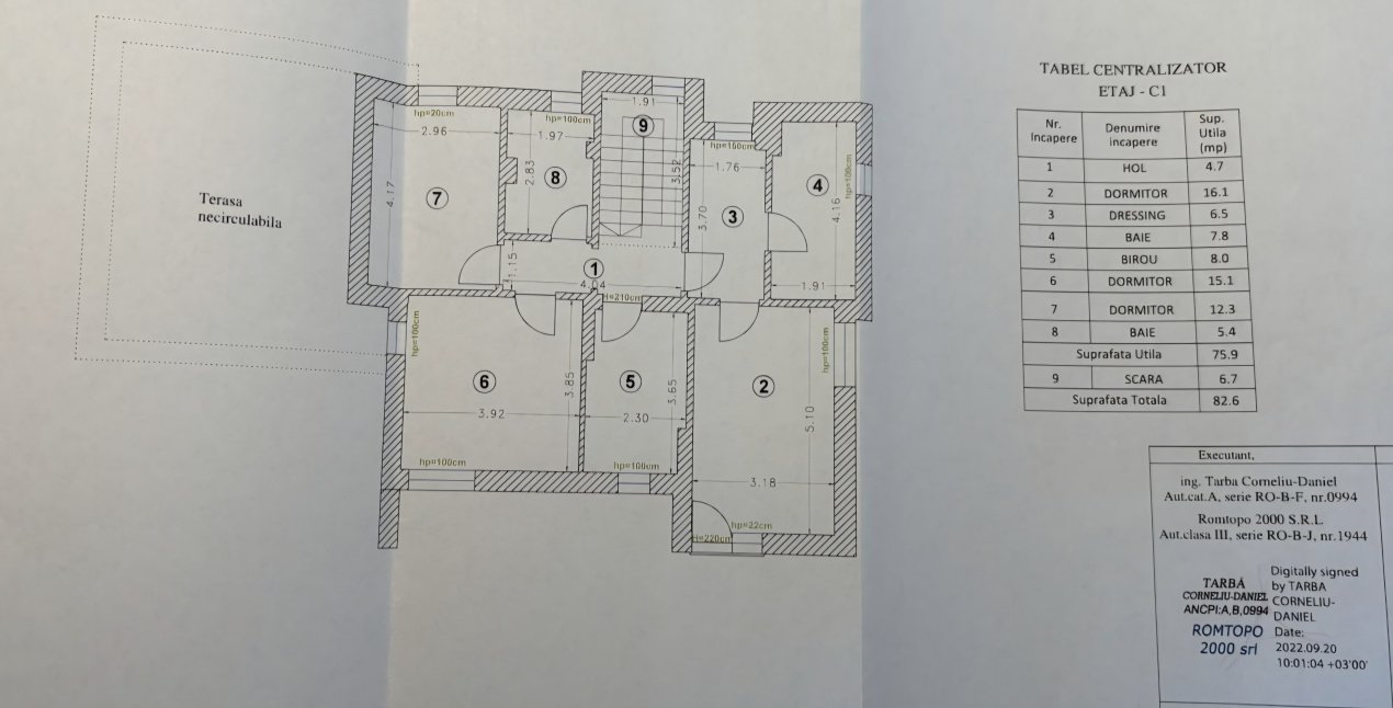 • Spatii utile: Spatiu depozitare, Dressing, WC Serviciu, Anexe