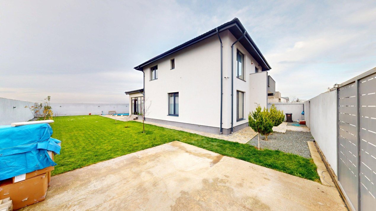 Vila se desfășoară pe un regim de înălțime P+1, cu o suprafata utilă de 163mp și este amplasată pe un teren generos de 603 mp cu o deschidere de 20ml la frontal stradal.