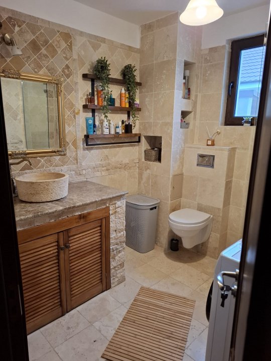 Compartimentarea este practică și bine gândită, oferind tot confortul necesar unei familii moderne. Casa dispune de 4 dormitoare, 2 băi și un living spațios, ideal pentru relaxare și momente petrecute împreună. Bucătăria este complet mobilată și utilată, iar la interior se remarcă finisajele de calitate și sistemul de încălzire în pardoseală, asigurat de centrala termică pe gaz, care garantează un climat plăcut pe tot parcursul anului. Proprietatea beneficiază, de asemenea, de un beci funcțional și un pod circulabil, perfecte pentru spațiu suplimentar de depozitare. In plus, proprietatea beneficiaza de protectie, avand si un sistem de siguranta video profesional. Construcția este solidă, realizată pe structură de grinzi și stâlpi din beton armat, cu zidărie din BCA, finalizată în anul 2020. Curtea este amenajată și include un barbeque din cărămidă, o stație de încărcare pentru mașini electrice, iar la nevoie există posibilitatea construirii unui garaj. Casa se vinde complet mobilată și utilată fiind pregătită pentru mutare imediată. Această proprietate reprezintă alegerea ideală pentru o familie care își dorește un cămin modern, sigur și confortabil, situat într-o zonă liniștită, bine conectată la oraș, cu vecinătăți prietenoase și acces facil către toate punctele de interes.