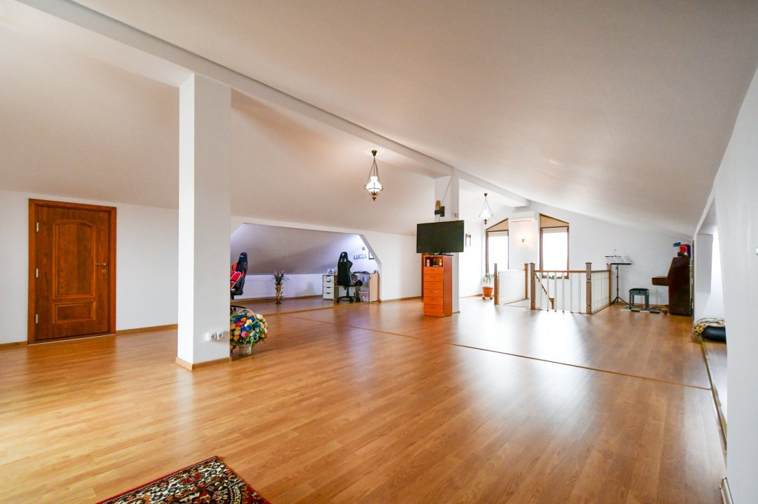 Etaj – Hol de acces cu 2 dressing-uri, 3 dormitoare (fiecare cu iesire in balcon), baie, birou, 2 balcoane si casa scarii – Total util 126,40mp + 22,40mp balcoane;