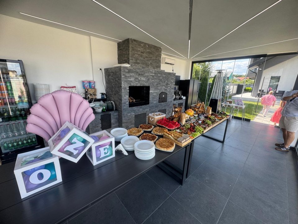 Foișor de 50 mp, închis cu sticlă, încălzit și dotat complet: șemineu, cuptor pe vatră, grătar, afumătoare, plită țărănească, plită pe gaz, frigider de vinuri, TV, frigider/congelator