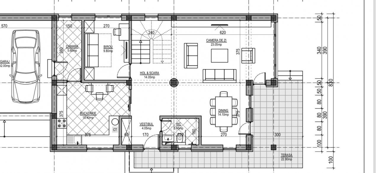 Construcție solidă din beton și cărămidă, izolată cu polistiren grafitat de 15 cm