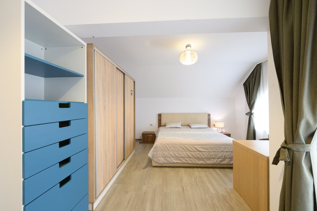 - La nivelul parterului se află și garajul închis, cu acces direct în interior.