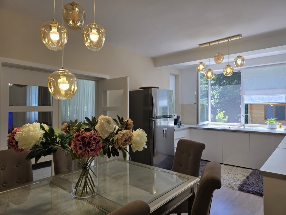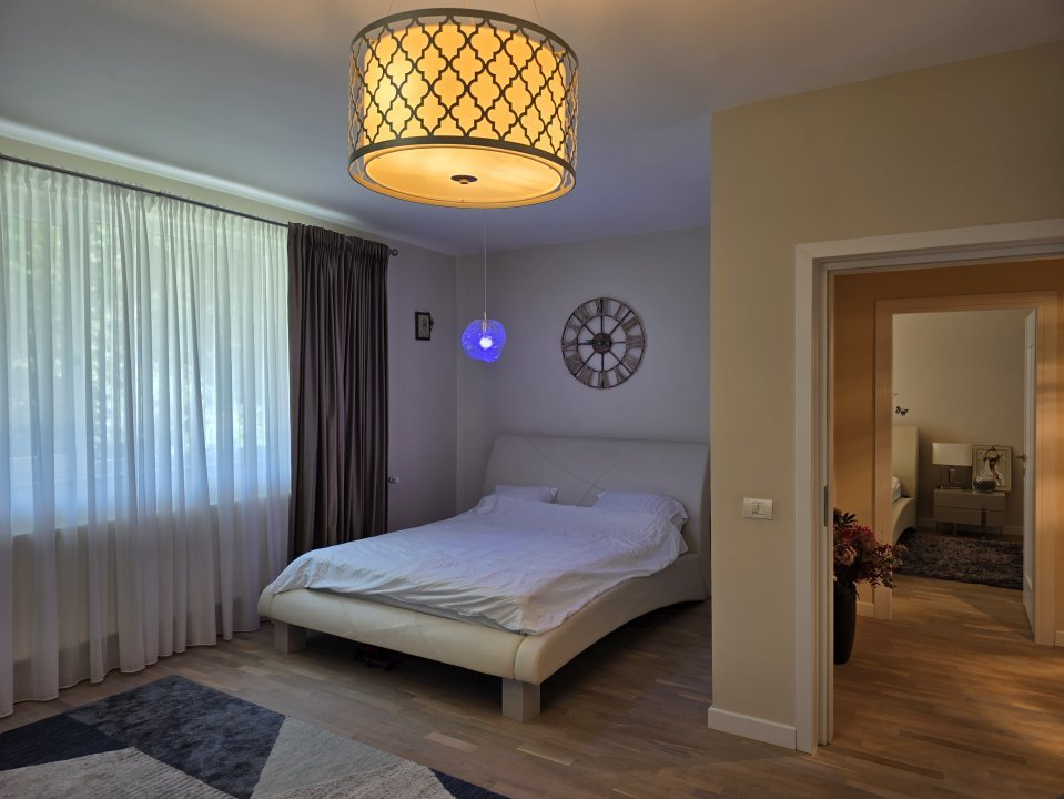 În ceea ce privește zona, vila este retrasă de la drumul principal, într-un cadru liniștit, unde zgomotul urban este redus. Izolația foarte bună și poziționarea atent aleasă asigură un ambient interior liniștit, în ciuda vecinătăților zonei de transport, făcând din această casă o alegere echilibrată pentru cei care caută confort fără să fie departe de oraș.