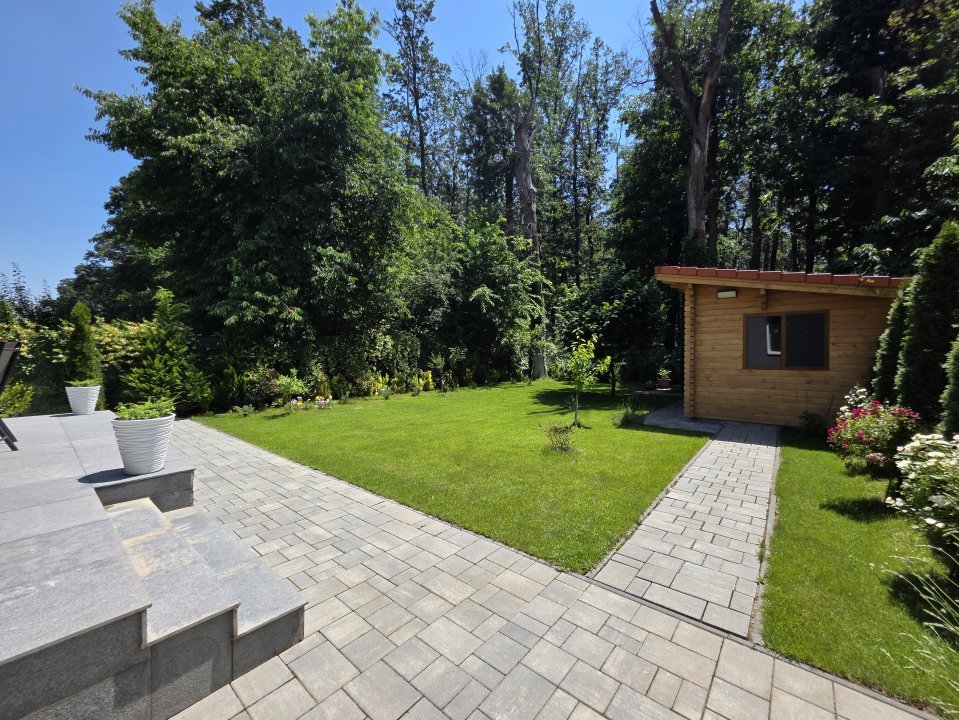 Amplasată pe un teren generos, proprietatea se bucură de o curte extinsă, amenajată și delimitată eficient, oferind multiple zone de relaxare, grădinărit sau spațiu de joacă. Accesul în profunzime până la liziera pădurii oferă un plus de intimitate și un cadru natural plăcut, ideal pentru cei care își doresc un colț de natură lângă casă.