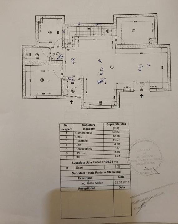 Interiorul, cu o suprafață utilă de 270 mp (300 mp construiți), este compartimentat armonios :