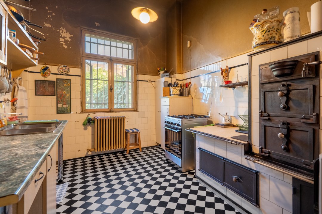 Construita in stil art deco, cu toate elementele originale de arhitectura si finisaje conservate de-a lungul timpului, casa este inconjurata de o frumoasa si intima gradina, cu o varietate mare de plante si arbusti, pe care proprietarii o admirau de pe terasa generoasa cu iesire din dining, terasa ce gazduia partide de bridge si canasta, in serile racoroase de vara.