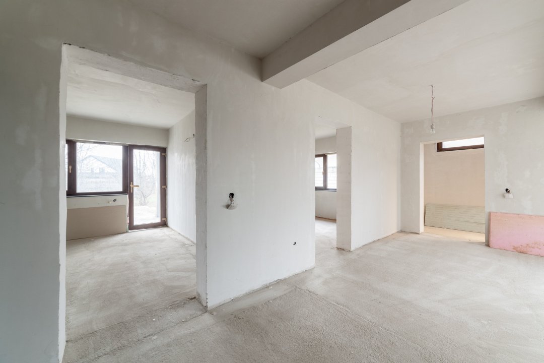 *** La parter regasim un living spatios, bucatarie, 2 dormitoare, dressing, baie si camera tehnica/dressing, iar la etaj sunt patru dormitoare, o baie si doua balcoane. Casa este „la gri”, cu instalatiile electrice si termice realizate la parter, caloriferele fiind deja achizitionate, oferind astfel un punct foarte bun de plecare pentru finisare.