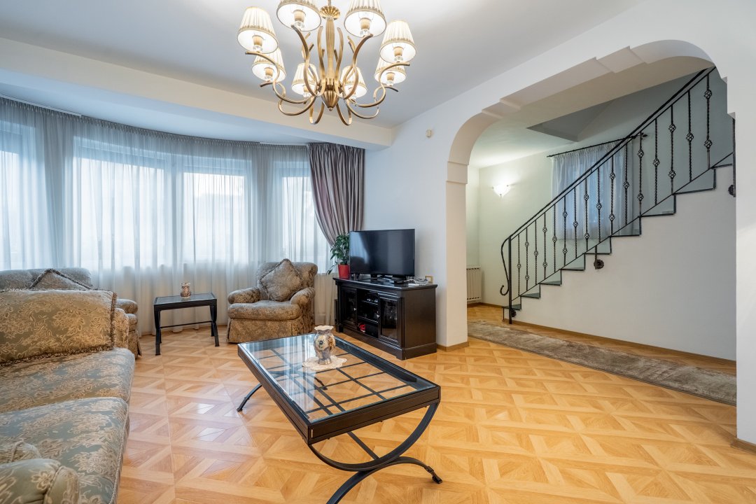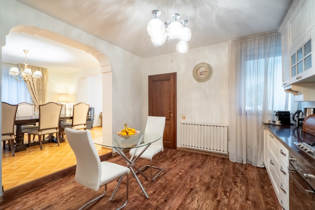 Această reședință de excepție se desfășoară pe demisol, parter, etaj și mansardă, având o suprafață generoasă și o compartimentare gândită inteligent, pentru a răspunde atât nevoilor unei familii numeroase, cât și cerințelor unui stil de viață activ.