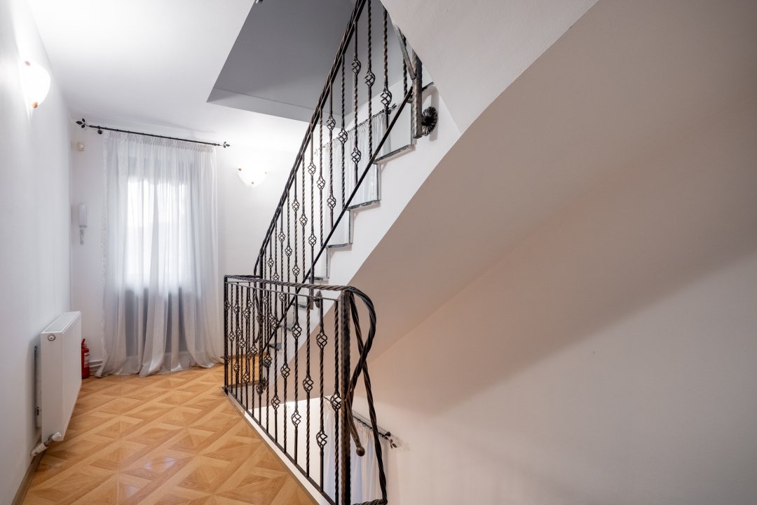 Scări îmbrăcate în granit italian, acoperiș cu țiglă de calitate superioară.