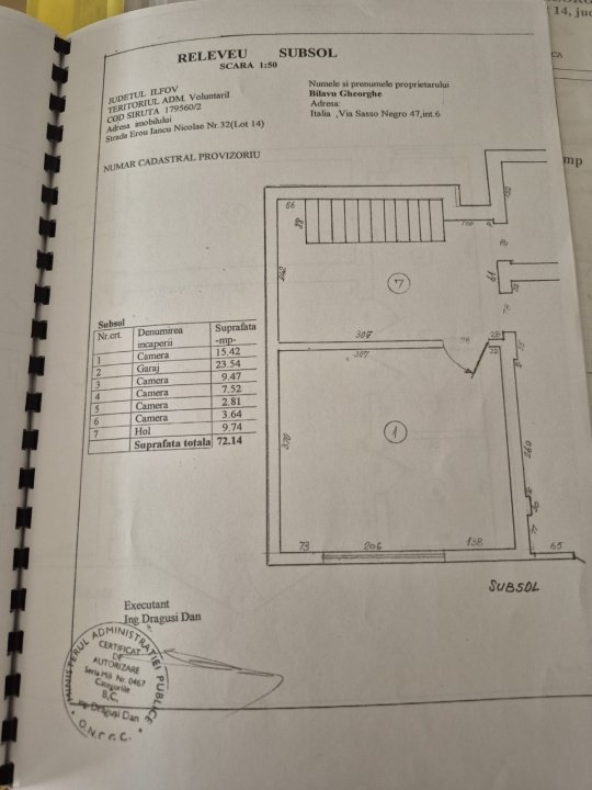 Garaj electric subteran cu telecomandă și 4 locuri de parcare exterioare.