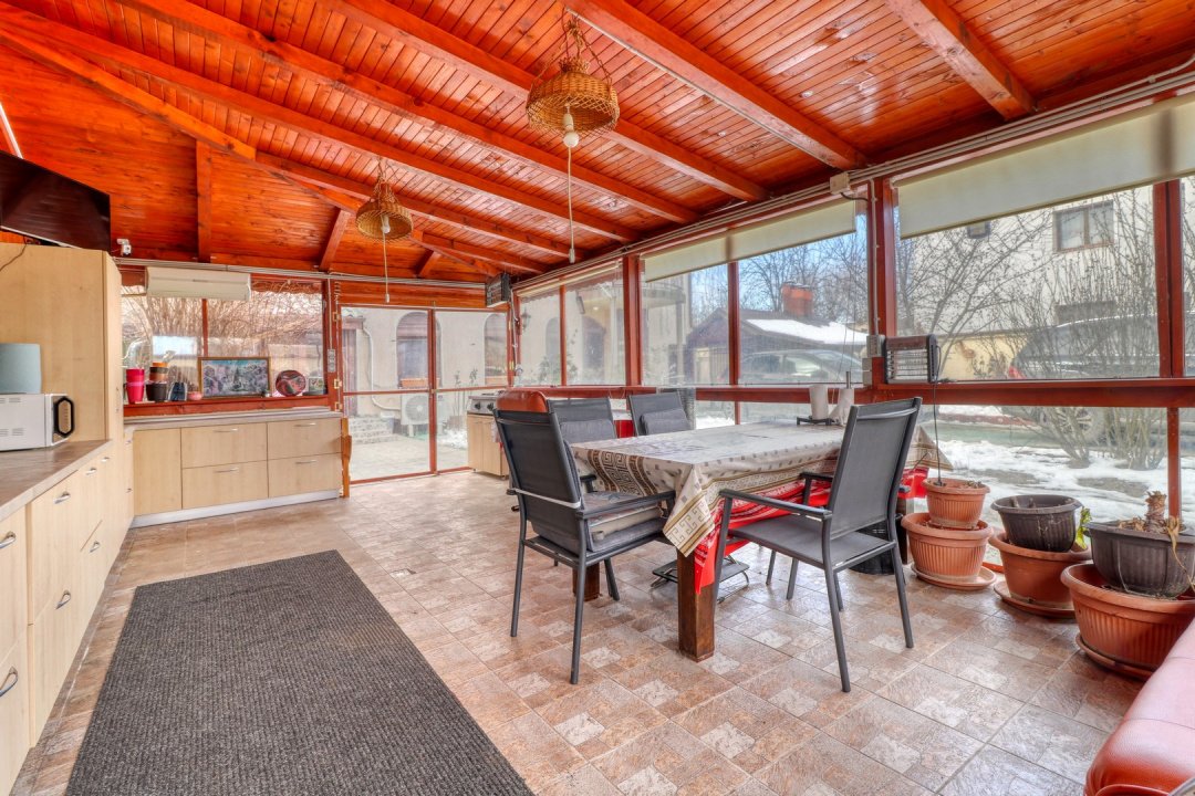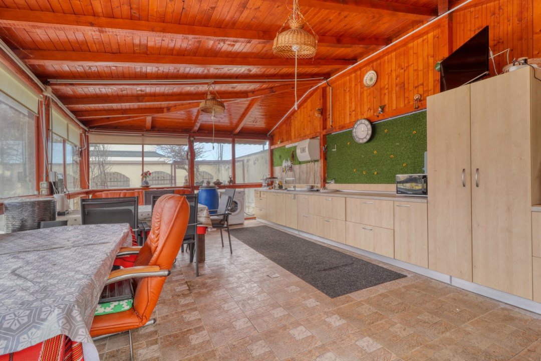 Curtea este amenajată cu alei pavate și spații verzi, oferind atât funcționalitate, cât și intimitate. Proprietatea beneficiază de un foișor închis, complet utilat, ideal pentru utilizare pe tot parcursul anului, zonă de grătar și afumătoare, spații de depozitare exterioare și toaletă exterioară complet finisată.