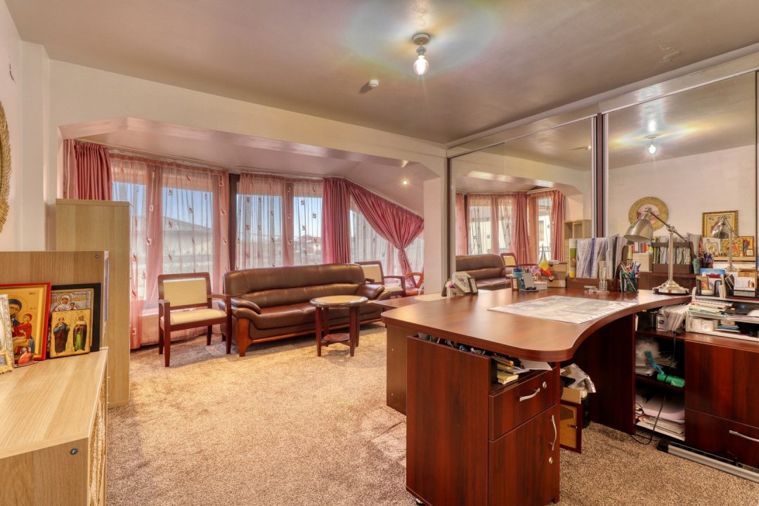 Etaj: două dormitoare, dressing, birou, baie, balcon