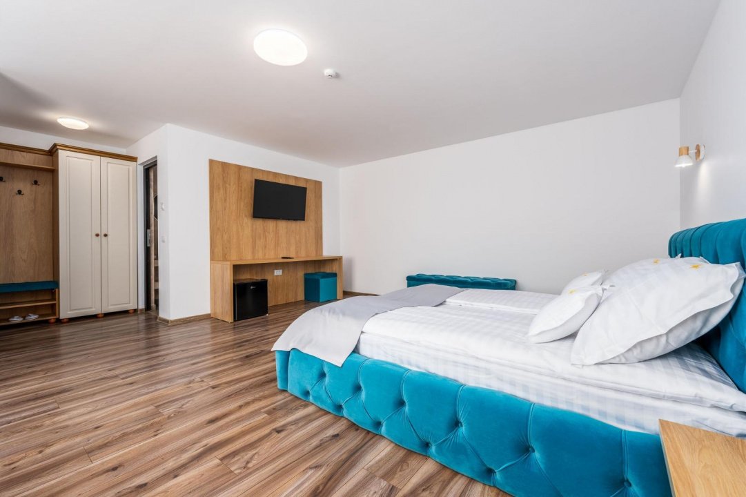 Fiecare camera a fost proiectata pentru confortul si relaxarea oaspetilor. Spatiile sunt luminoase, primitoare si finisate cu materiale de calitate superioara. Mobila noua, realizata pe comanda, in stil modern. Paturi matrimoniale confortabile cu saltele premium si lenjerii de calitate hoteliera.