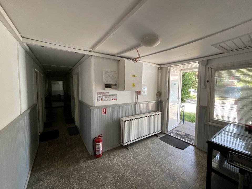 Clădire birouri – 166 mp: situată pe parter, compusă din 6 camere, spațiu tehnic și grup sanitar.