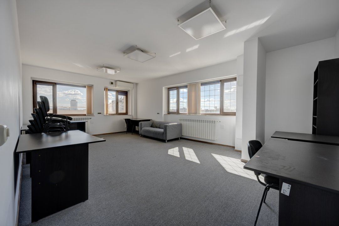 Spații generoase, aerisite și natural iluminate, cu mix de open-space, birouri individuale, săli de ședință, spații pentru servirea mesei, grupuri sanitare pe fiecare nivel și acces prin lift până la etajul 4