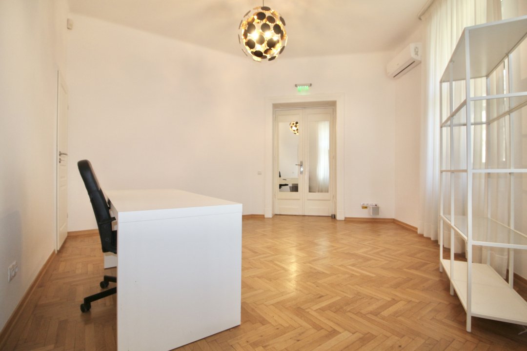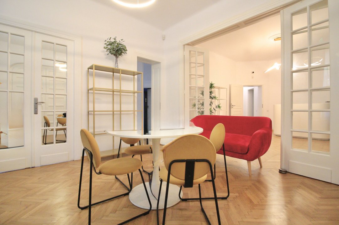 MOSILOR-PACHE PROTOPOPESCU, SEDIU REPREZENTATIV, AMENAJAT LUX, 6 CAMERE, 127MP! Poziție ultracentrală privilegiata (vedere chiar în rondul Izvorul Rece), foarte aproape de Piata Universității, accesibila ușor din orice zona a capitalei cu multiple mijloace de transport. Interior rafinat, cu elemente originale recondiționate, spații largi si înalte, bucătărie mobilata si utilata, multiple spații pentru depozitare. Spațiul, situat la parterul (înalt) al unui bloc interbelic emblematic, cu vizibilitate stradala si trafic pietonal, poate fi potrivit pentru notariat, cabinete avocatura sau consultanta, psihologie, showroom, magazin (online), firma evenimente, birou arhitectura, etc.