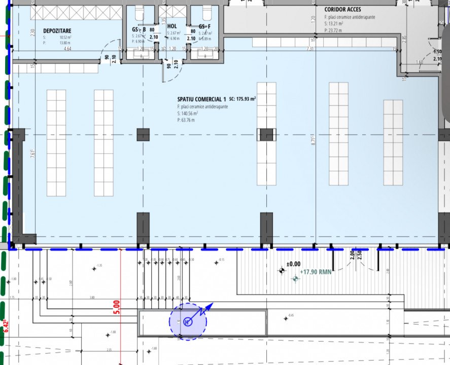 Amplasat la parterul celui mai nou proiect Primavara Development, in cea mai dinamica zona a orasului Constanta, chiar cu expunere la Bulevardul Aurel Vlaicu de 20 metri, acest spatiu comercial se preteaza pentru mai multe tipuri de activitati comerciale, avand o inaltime de 4,25m de la pardoseala pana la tavan, foarte versatil in ceea ce priveste posibila compartimentare interioara.